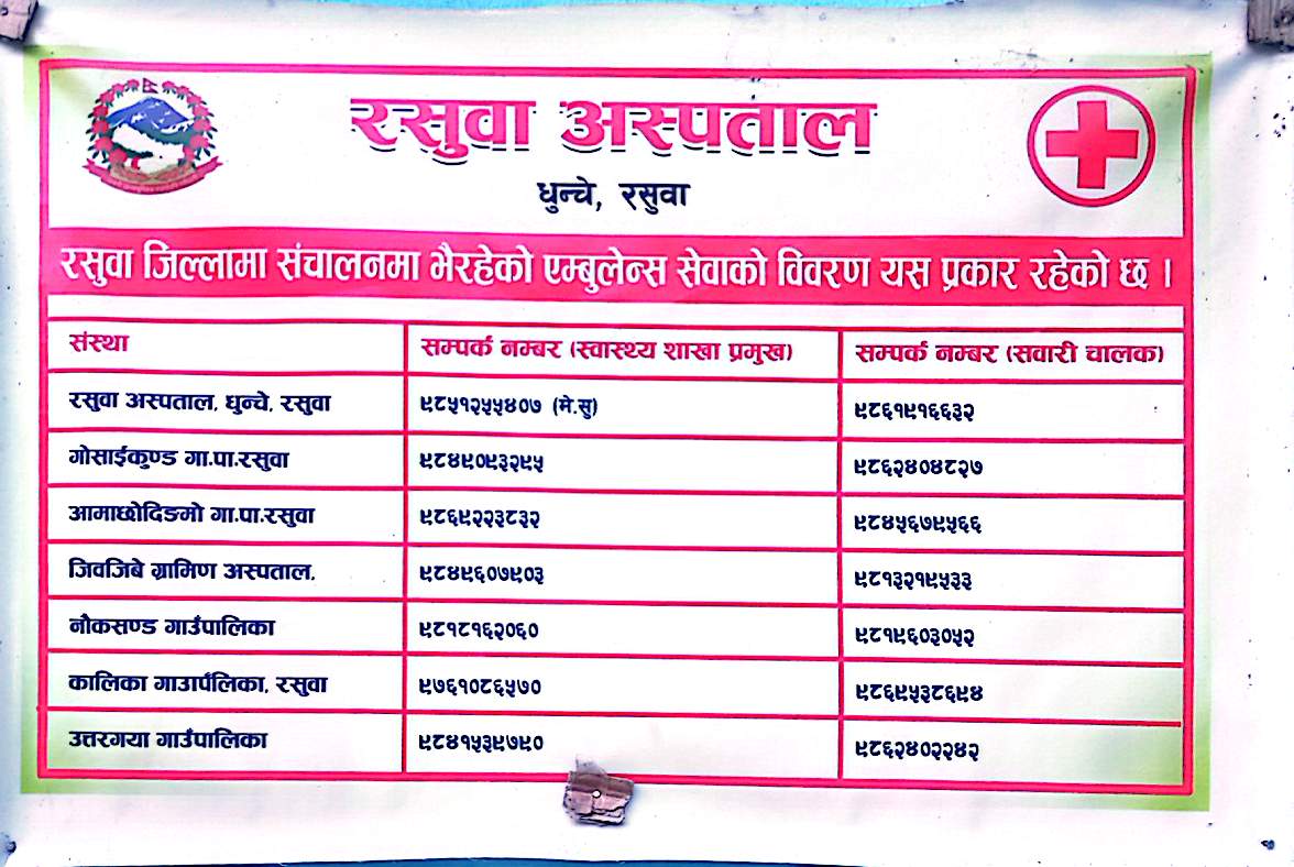 रसुवा जिल्लामा संचालन भैरहेको एम्बुलेन्स सेवाको बिबरण |